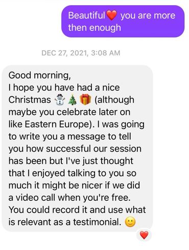 I worked on weight issues and eating sweets with Julia. I wanted to stop cravings and also to be empowered and able to leave food on a plate without feeling like I had to finish it even if I didn't like it. Ever since childhood I felt this way. I have been through a traditional therapy before but during the session with Julia I had a HUGE